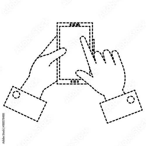hand with smartphone device vector illustration design