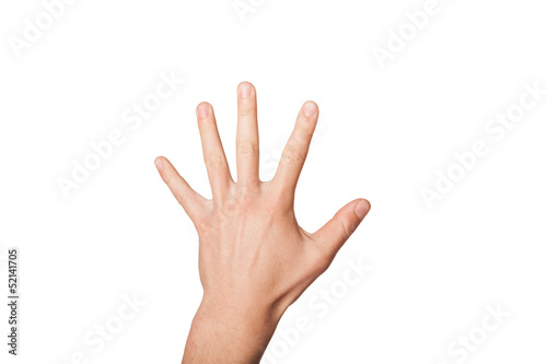 Hand zeigt Zahl 5 freigestellt gerade