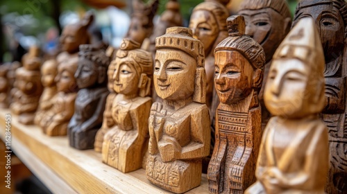 HandCarved Wooden Statues Asian Figurines Wooden Crafts Market Display