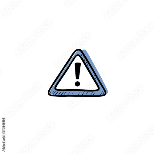Hand-Drawn Blue Triangle Warning Sign with Exclamation Mark.
