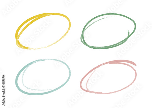 Hand-drawn colored grunge ovals with marker, chalk or pencil. Round doodle frames