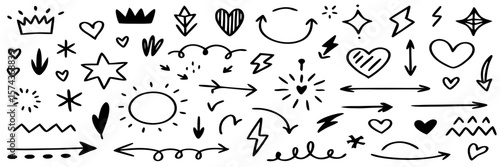 Hand-drawn Doodle Design Elements: Arrows, Hearts, Crowns, Stars