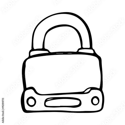 Hand-Drawn Doodle Lock. Hand drawn Padlock sketch style. Locked Padlock Drawing, security concept art.