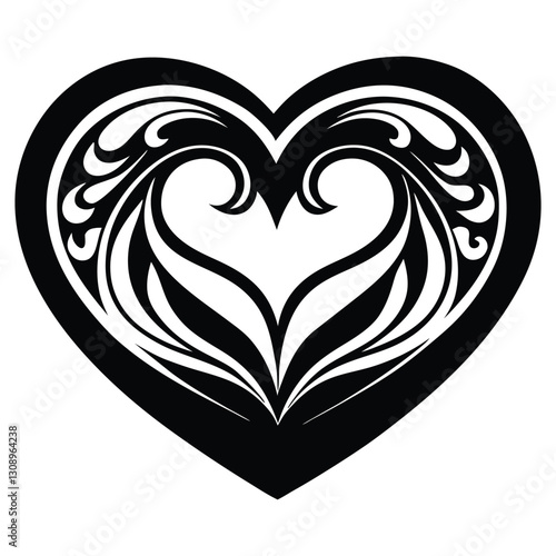 Hand-Drawn Heart Silhouette Clipart, Romantic Love Symbol, Sketch-Style Heart Illustration for Greeting Cards, Tattoos, and Digital Art