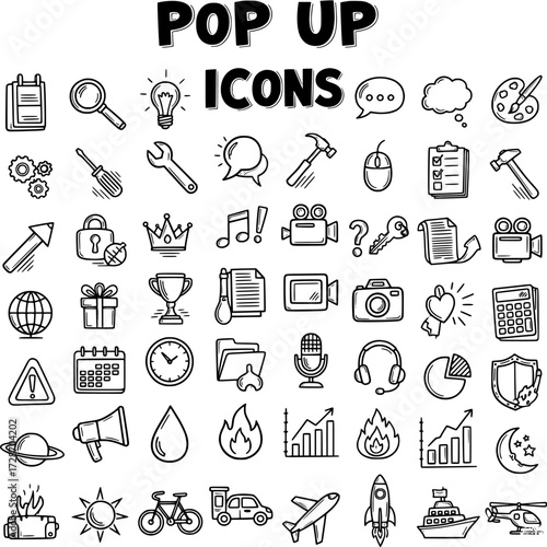 Hand-Drawn Pop-Up Icons Collection: A Versatile Set for Modern Design Projects