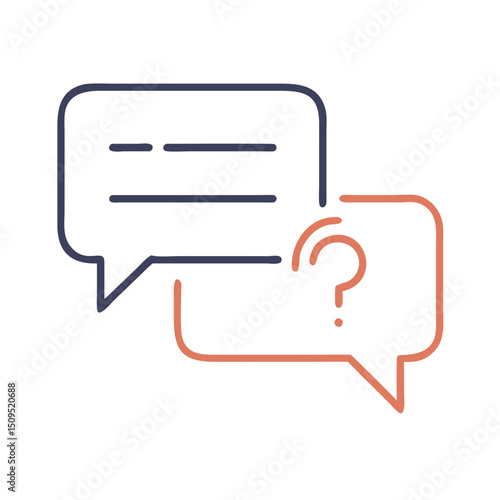 Hand-drawn speech bubbles with question mark and dialogue lines
