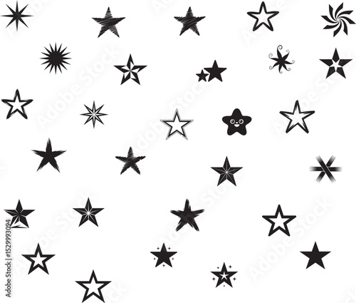 Hand-Drawn Star Silhouettes Vector Bundle – Sketch Style Decorative Elements