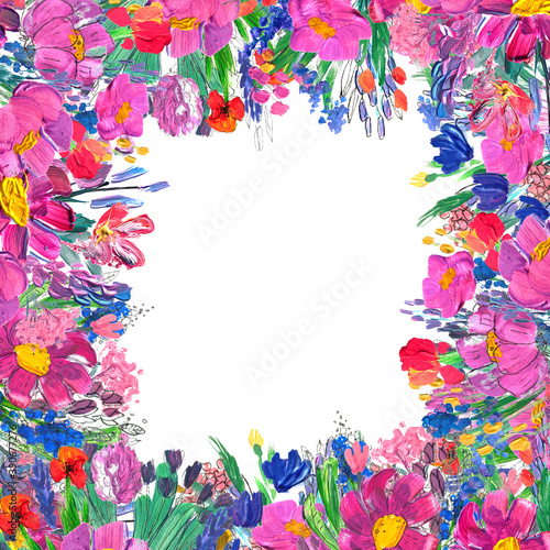 Hand-painted floral border. Wildrlowers on white background