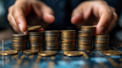 Hands Carefully Stacking Coins Showing Financial Growth