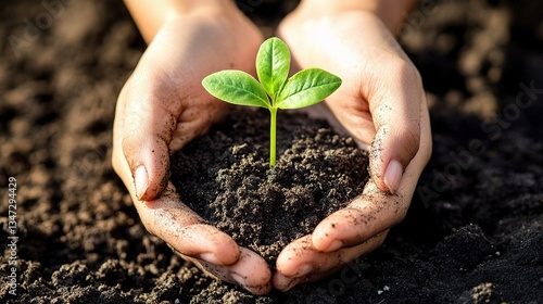 Hands Gently Cradling Tiny Green Sprout Emerging from Dark Soil