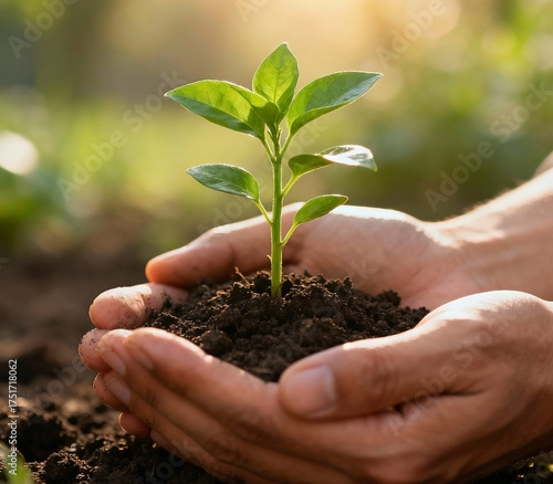 Hands gently holding a small green plant growing from soil, symbol of hope and recovery