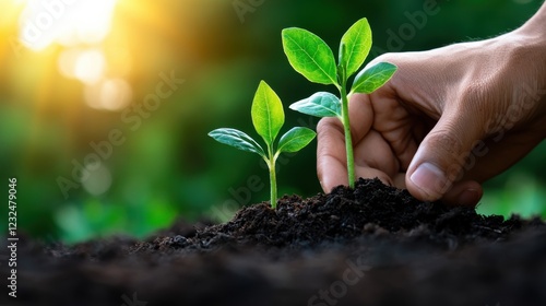 Hands gently planting a young seedling in rich soil symbolizing sustainable growth strategies and a commitment to a more environmentally friendly future