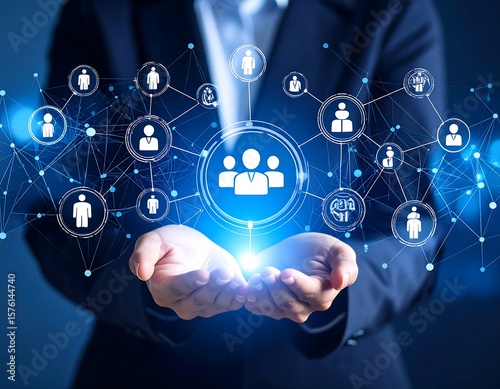 Hands holding a network of people