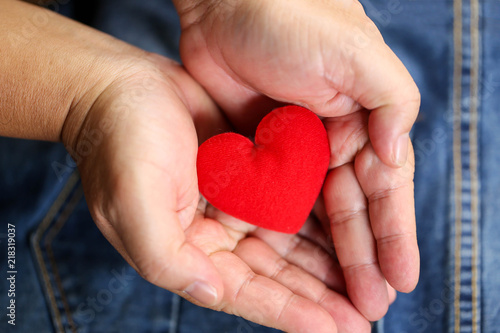 Hands holding red heart, health care, donate and family insurance concept,world heart day, world health day
