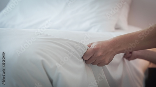 Hands Making Bed from Hotel Room Service