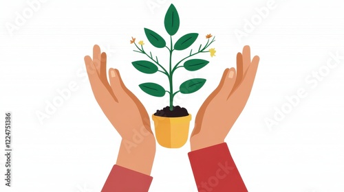 Hands nurturing a small plant in a pot.