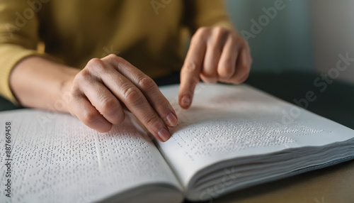 Hands of a blind person reading from a book in Braille.