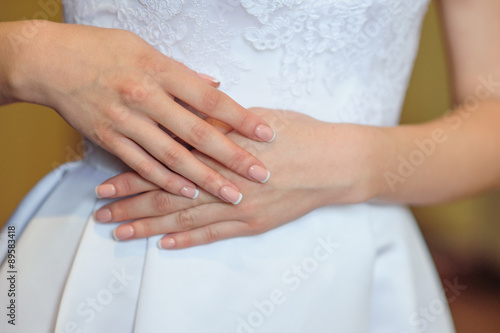 hands of a bride with a wedding manicure