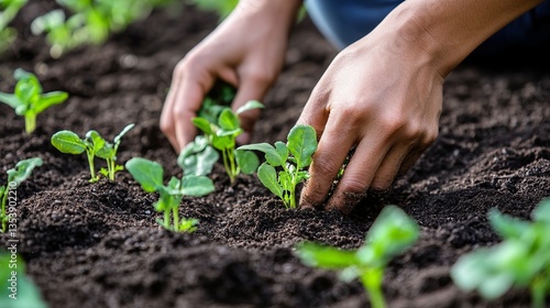Hands Planting Seedlings in Garden Soil – A Touch of Nature's Growth