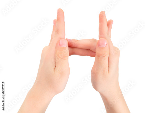 hands represents letter H from alphabet