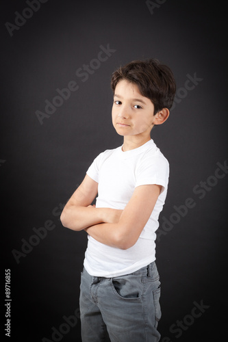 Handsome boy doing different expressions in different sets of clothes: arms crossed