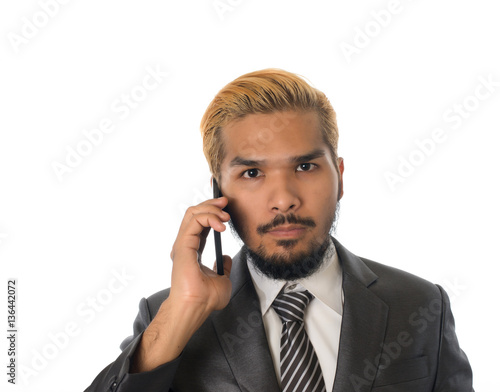 Handsome businessman use mobile phone isolated on white.
