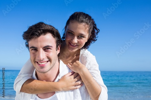 Handsome man giving piggy back to his girlfriend