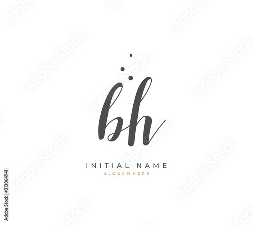 Handwritten letter B H BH for identity and logo. Vector logo template with handwriting and signature style.