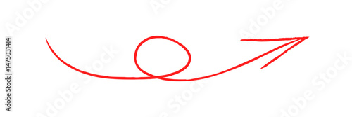 Handwritten red arrow swirling pointing up. Arrow drawn by hand with a line