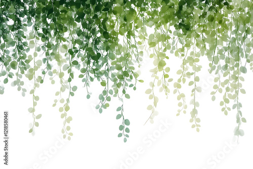 hanging green vines, botanical elements isolated on transparent white background