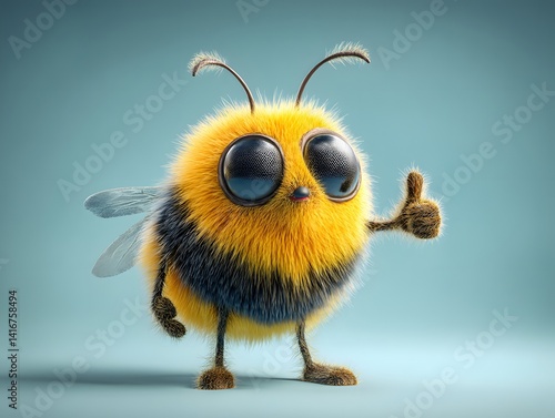 Happy 3D Cartoon Bee Giving a Thumbs Up