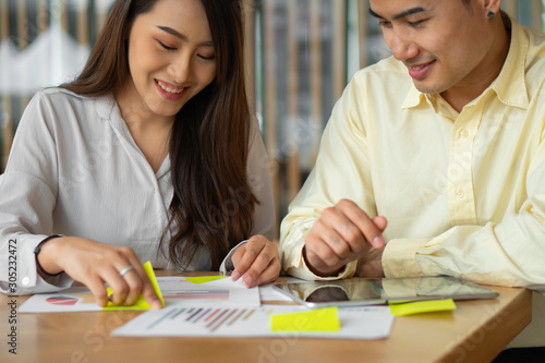 Happy Asian couples be smile after calculating income And expenses because it receives profits from investments. Concepts for investment planning and financial planning for the family.