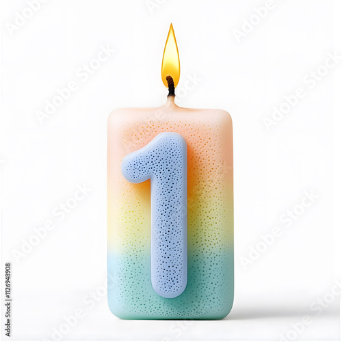 Happy Birthday burning candle in the form of number 1 one isolated on white background
