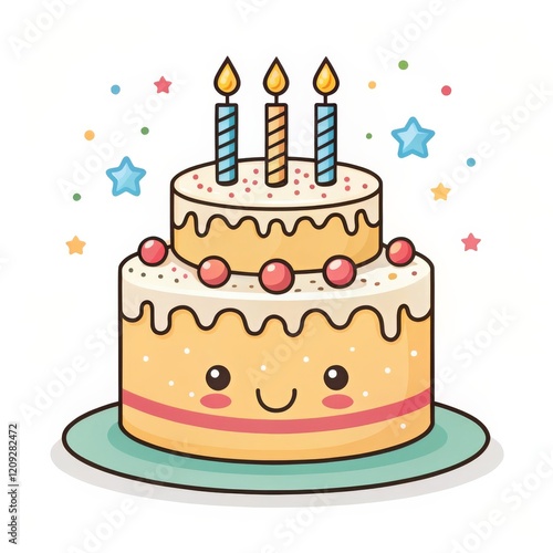 Happy Birthday Cake Two-Layered Cartoon Illustration,Pastel Colors, Cute Design. Birthday Cake, Cute Cake