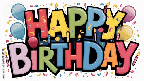 Happy Birthday! Colorful Festive Design with Balloons and Candles - Perfect for Cards, Banners, and Party Decorations