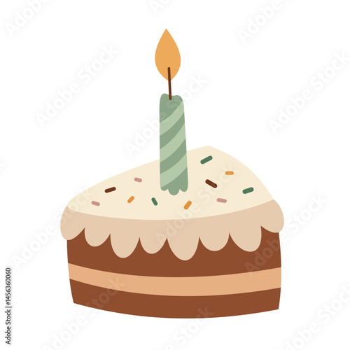 Happy Birthday cupcake clipart in boho style, isolated cartoon festive object. Hand drawn vector illustration in flat style.