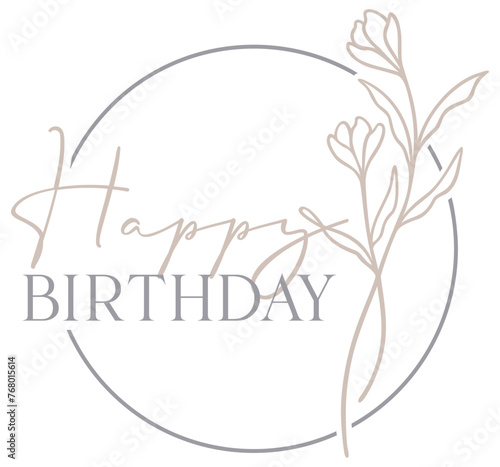 Happy Birthday Design | Circle Flower Frame | Floral Bouquet | Botanical Vector Illustration