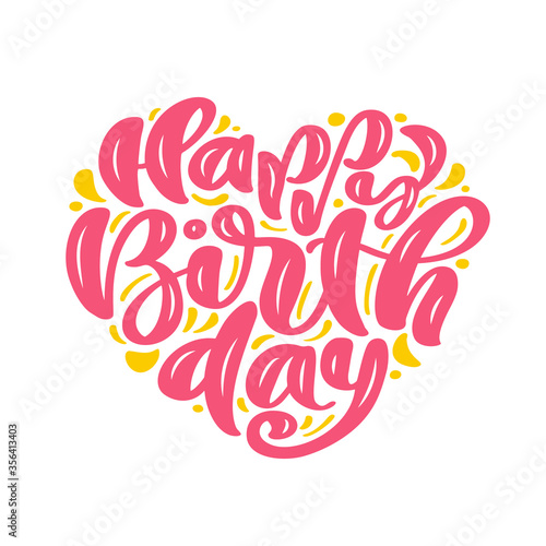 Happy Birthday Hand drawn vector text phrase in the shape of a heart. Calligraphy lettering word graphic, vintage art for posters and greeting cards design. Calligraphic quote love illustration