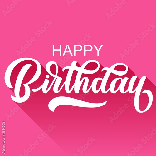 Happy birthday handwriting letters, retro brush calligraphy, vector type design, lettering with long shadow.