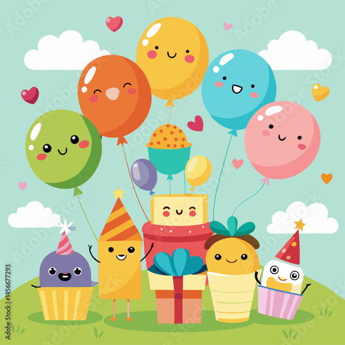 Happy Birthday Party Illustration with Cute Characters