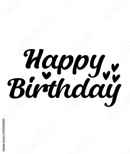 Happy Birthday typography design on plain white transparent isolated background for card, shirt, hoodie, sweatshirt, apparel, tag, mug, icon, poster or badge