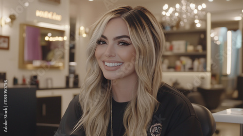 Happy Blonde with Long Curls Smiling