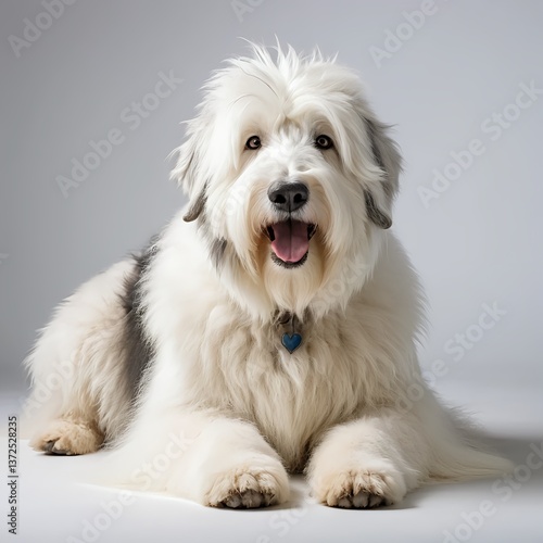 Happy Bobtail Sheepdog Puppy Lying Down