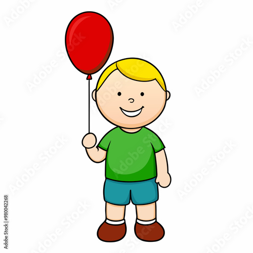 Happy boy with a red balloon stock illustration