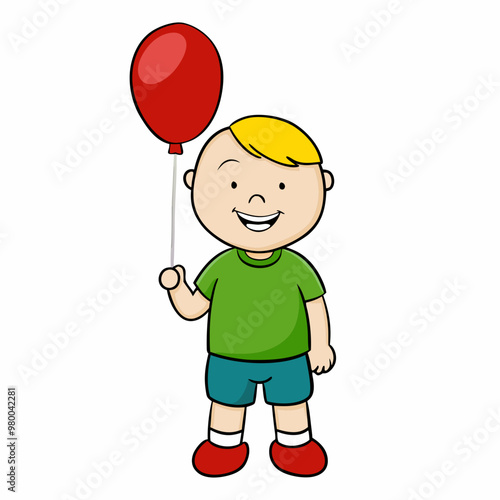 Happy boy with a red balloon stock illustration