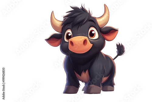 Happy Bull Cartoon Character with Big Smile on transparent background