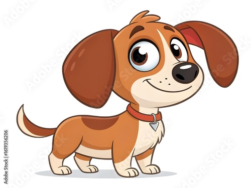 Happy cartoon beagle puppy dog with floppy ears and collar