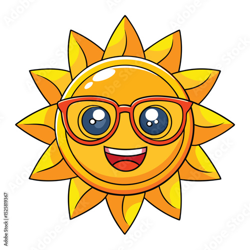 Happy cartoon sun wearing sunglasses