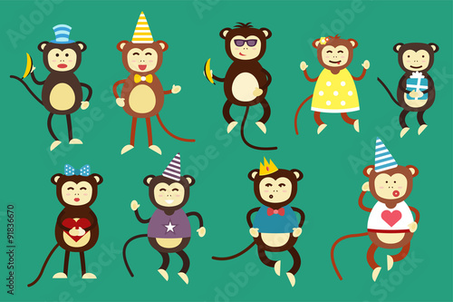 Happy cartoon vector monkey dancing party birthday background