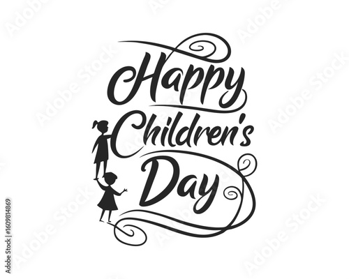 Happy Childrens Day Celebration Design with Cute Girl Silhouettes